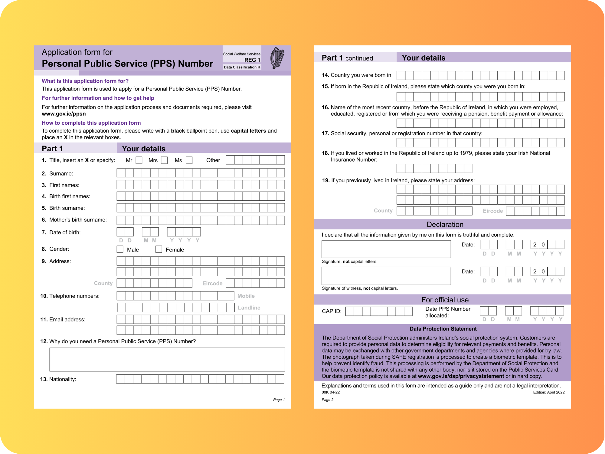 驾照申请表上的第一项就是填写 PPSN。